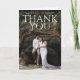 Esta moderna y audaz tarjeta de agradecimiento incluye un gran mensaje de agradecimiento encima de un fondo fotográfico. Los nombres de la pareja se muestran encima del mensaje de agradecimiento y el interior está en blanco para escribir a mano un mensaje personalizado de agradecimiento.
