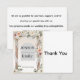 Express your gratitude in style with this elegant wedding thank you card. Personalize it with your names, wedding date, and a heartfelt message to your guests. Perfect for sending love and appreciation after your special day.