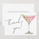 A Tini Bit Older / A Tini Little One Thank You Card. This playful design works perfectly for thanking guests after a birthday or even a baby shower. On the front, a watercolor pink cosmopolitan martini glass with a lime twist sits on the right side, while “Thank You” is written in stylish script on the left for a fun, modern touch. The back has space to add a personal note and your name, or you can leave it blank if you’d prefer to handwrite a message for a more personal feel.