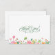 Tipografía simple y dulce con script, "¡Gracias!" con florituras en verde medio. Aunque puedes cambiar el color como desees con el botón de Edición. En el borde inferior, una ilustración de flores en acuarela; rosas, naranja, amarillo y vegetación. Fondo blanco delante y detrás. Perfecto para un baby shower de jardín, una fiesta de té o cumpleaños.