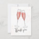 Este diseño presenta una tarjeta de agradecimiento para una despedida de soltera, con un tono rosa, con un tema de bodas, letra, con un arte de aquarela moderno y elegante, champán con tipografía caligráfica, con un tema de brunch y burbujas.