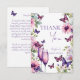 Tarjetas de agradecimiento para ducha de novia de primavera verano con margaritas rosadas y copas de champán púrpura con mariposas rosadas y púrpuras de por vida
