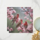 En Un Árbol De Flor Rosa Se Pueden Ver Tres Finchas Rojas.