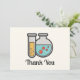 Gracias tarjeta con un lindo ilustracion de un tubo de ensayo que contiene líquido amarillo y un matraz/vaso de agua redondeado que contiene líquido verde con burbujas rojas.