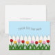 Esta encantadora ilustración presenta una verja blanca y una hilera de tulipanes rojos, rosados y amarillos. Utilice el espacio en el cielo azul para escribir su saludo personalizado u otro texto personalizado (por ejemplo, nombre comercial) en texto ondulado divertido.