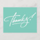 Guión moderno manuscrito Gracias postales en turquesa. Perfecto para Bodas, cumpleaños, Navidades, duchas o cualquier otra ocasión. Las postales de color turquesa 'Gracias', si es necesario, eligen cualquier otro color o añaden su propio texto impreso, dirección o nombre de la empresa en la pestaña "Personalizar".