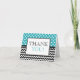 Tarjetas de agradecimiento elegantes y para cualquier ocasión con lunares blancos sobre turquesa en la parte superior y un patrón zigzag de chevron en blanco y negro en la parte inferior. El interior se puede personalizar con su propio mensaje personalizado o se puede eliminar fácilmente para dejar la tarjeta en blanco para escribir a mano su mensaje.