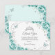 Tarjeta De Agradecimiento Turquoise Silver Floral Quinceanera