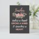Un maestro toma una mano abre una mente y toca un corazón de diseño. Este es un breve cita sentimental que es ideal como regalo para la apreciación de maestros. También es adecuado como un regalo general para maestros en cumpleaños, Navidad o Día de San Valentín.