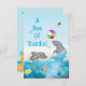 “Un mar de agradecimientos” captura la vibrante energía de un chapuzón o una fiesta en el agua en verano con delfines juguetones saltando para alcanzar un balón de voleibol de playa, mientras los animales del océano asoman desde debajo de las olas. Este diseño animado reúne la magia de un cumpleaños marino con la diversión de una fiesta de natación, lo que resulta atractivo tanto para niños como para padres. Perfecto para un cumpleaños bajo el mar o una fiesta de piscina de verano, esta tarjeta de agradecimiento es una forma alegre de terminar la celebración.