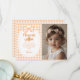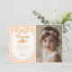 Tarjeta de agradecimiento de foto de cumpleaños de niña de melocotón 1er cumpleaños