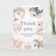 Beautiful baby shower party thank you card features a dolphin, whale, jellyfish, seahorse, starfish and turtle with coral pink floral arrangements. Perfect for a baby shower party. The words can be changed to suit your own details or requirements