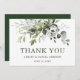 Moderna y elegante acuarela Boda de la vegetación botánica Gracias tarjeta incluye hojas de eucalipto, follaje botánico verde, polvorientas hojas azules y otros hermosos paisajes botánicos.