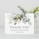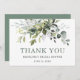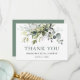 Moderna y elegante acuarela Vegetación Botánica Ducha Nupcial Gracias tarjeta incluye hojas de eucalipto, follaje botánico verde, polvorientas hojas azules y otros hermosos paisajes botánicos. Sage Green Back.