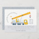 Un divertido camión grúa vehículo de construcción para niños colección de cumpleaños. Es una ilustración minimalista simple y elegante de un camión grúa gris y amarillo que lleva el año de cumpleaños, perfecto para la fiesta de cumpleaños con tema de vehículos de construcción de tus pequeños. Es muy fácil de personalizar con tus datos personales. Si necesitas otro producto o personalización coincidente, envía un mensaje a través de Zazzle.