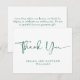 Simple tarjeta de agradecimiento con letra verde esmeralda de la novia y el novio para regalos de boda. mensaje personalizado incluido.