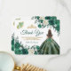 Tarjeta De Agradecimiento Verde Esmeralda Vestido Corona de Oro de Quinceañe