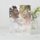 Tarjeta de agradecimiento de boda elegante bohemio floral botánico con tu foto. Hermoso dibujo vintage de peonías verdes en la parte inferior