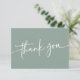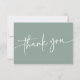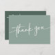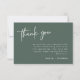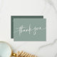 Una tarjeta de agradecimiento minimalista que presenta un diseño elegante con una paleta de colores verde salvia terrosa y una fuente moderna. Esta tarjeta plana tiene la palabra "gracias" en la parte frontal y luego un mensaje de agradecimiento editable en el reverso. Esta tarjeta es la forma perfecta de agradecer a los invitados por sus regalos de ducha, boda o fiesta. Combina con cualquier cosa en la colección SAM para un look coherente.