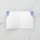 Elegante vestido de novia, remolinos y candelabro sobre fondo azul real Tarjeta de agradecimiento para boda