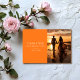 Share your wedding memories in a modern, heartfelt way with this photo wedding thank you card from the Vivid Vows collection. Featuring a bold tangerine color block paired with a full-height wedding photo, this design blends contemporary style with timeless sentiment.