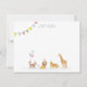 Watercolor nursery note card featuring wild safari animals, including a lion, giraffe, monkey, and tiger, with soft pastel details and playful party accents inspired by the popular Wild One theme. Gentle watercolor illustrations create a warm, whimsical look perfect for baby and nursery stationery.