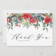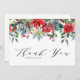 Envíe gracias con esta tarjeta de agradecimiento floral de personalizable. Cuenta con una acuarela florida de color floral con flores de poinsettia, rosas rojos y de marfil, pinecones, winterberries y vegetación. Personalice agregando nombres, mensajes y otros detalles. Esta tarjeta floral de agradecimiento es perfecta para bodas de invierno, duchas de novias, duchas para bebés y mucho más.