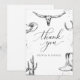Show your gratitude in true western style with this rustic cowboy wedding thank you card. Designed with a warm desert brown background and elegant white illustrations of a longhorn skull, cactus plants, and classic cowboy boots, this card perfectly complements a western, ranch, or country-themed wedding.