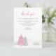 Carta de agradecimiento con un paisaje nevado con pino rosa.
