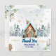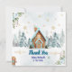 Front: Features a cozy watercolor gingerbread house, snowy pine trees, and icy blue florals with "Thank You" script text.