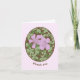 Esta tarjeta de agradecimiento incluye un ilustracion ovalado de hojas y flores de acedera de madera. El estilo de un bloque de madera le da a esta obra una calidad única y hecha a mano. Disponible en flores violetas o amarillas. De la obra original de Carolyn A Pappas.