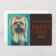 Zeige deine Wertschätzung mit einer bezaubernden Dankeskarte, die jedes Herz höherschlagen lässt! Diese liebevoll gestaltete Karte präsentiert einen niedlichen Yorkshire Terrier, der mit seinem charmanten Blick sofort ein Lächeln auf die Lippen zaubert. Perfekt für Tierliebhaber, Hundefreunde oder alle, die ihre Dankbarkeit auf eine besonders herzliche und stilvolle Weise ausdrücken möchten.