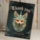 Tarjeta De Agradecimiento Zorro místico con ojos rojos penetrantes.