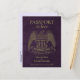 Estas tarjetas de aviso de boda son una forma divertida de informar a tus amigos y familiares sobre tu próxima boda en un destino lejano. Diseñadas para parecerse a un pasaporte, presentan un fondo de cuero morado con un águila dorada en la parte frontal con los nombres de la pareja, la fecha y el lugar de la boda. La parte trasera se asemeja al interior de un pasaporte con una foto y divertidos sellos de entrada.