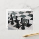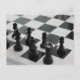 Fotografía de la esquina de un tablero de ajedrez con piezas oscuras mostrando posiciones en casa.
