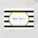 Tarjetas de ajuste de mesa boda en rayas blancas y negras clásicas con borde de color dorado, también disponibles en muchos productos bodas a juego.
