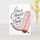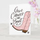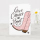 Tarjeta de felicitación del personalizado para el mes de Conciencia sobre el Cáncer de Mama o utilice en cualquier momento como tarjeta de éxito, tarjeta de simpatía o tarjeta de felicitación para pacientes con cáncer de mama y sobrevivientes. El diseño presenta un ilustracion de botas de vaquera rosa femenino con un diseño moderno de tipografía que dice "Dale al cáncer la bota".