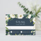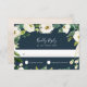 Diseñada para coordinar con nuestra colección de bodas de Alabaster, esta tarjeta RSVP botánica verde y azul marino presenta un rociado de vegetación acuarela y flores blancas que cubren la fecha de respuesta deseada y el personalizado acepta y rechaza la redacción.