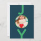 Una carta de Navidades minimalistas modernos y sencillos en azul y verde. En el frente: Un fondo azul clásico, con la palabra JOY escrita con letras verdes blancas. La letra O se usa como marco fotográfico. Personaliza y agrega tu propia foto familiar. Fondo azul y texto verde. Añade tus propios saludos y apellidos. Las letras de la palabra JOY como decoración.