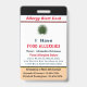 Tarjeta de alerta para alergias de identificación de personalizados ideal para alguien que debe usarlo - niño o adulto. Ayudará a la persona que tenga alergias a recordar lo que tiene y/o dárselo al restaurante o al dueño de la casa donde puede estar comiendo. A veces es difícil recordar todo a lo que eres alérgico cuando no estás en casa. Reemplace la información de esta tarjeta de alerta con información muy importante que conozca. Escriba más información en la parte posterior de la insignia.