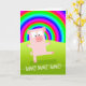 Tarjeta de aliento con cerdo bajo arco iris, baile