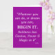 La famosa cita de Goethe "Lo que sea que puedas hacer, o soñar que puedas, Begin It. Boldness tiene Genius, Power & Magic in it" ha inspirado a la gente durante generaciones.. y ahora estas palabras están disponibles en las hermosas tarjetas de felicitación CardBard. (¡lo suficientemente hermoso para ser enmarcado!) Envíe uno a todos los que necesiten que se les recuerde que el poder infinito del Universo está disponible para todos los que se aprovechan de él con su corazón, mente y espíritu. Una parte de CADA venta beneficia a la Fundación de Investigación sobre el Cáncer de Mama.