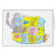 Un gato y un ratón sostienen un edredón con cosas que les encantan.
