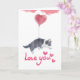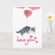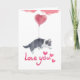 Envía un dulce mensaje de amor con esta adorable tarjeta de felicitación que presenta a un cachorro lindo sosteniendo un globo con forma de corazón.