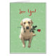 Tarjeta de amor, perro recuperador con Rosa, adora