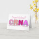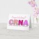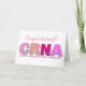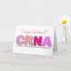 Tarjeta de felicitación para anestesista enfermera (CRNA) "Felicidades". Los colores de las letras son tonos de rosa con una tira de ritmo cardíaco en el medio de las letras.