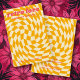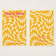 Tarjeta de visualización de joyería de diseño con un patrón de tablero de ajedrez amarillo y retorcido y el nombre de tu empresa o diseño con un estilo retro, frambuesa de color rosa caliente.