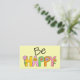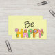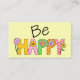 La minitarjeta "Be Happy" es una manera personal de hacer saber a alguien que quieres compartir algo de ánimo con ellos, haciéndoles saber que realmente te importa. Esta imagen muestra un poco de felicidad con las flores, diseño general caprichoso, fondo amarillo, y por supuesto las palabras Be Happy. La palabra feliz fue pintada a mano para ese toque personal. La parte posterior está en blanco, así que puede enviar una nota especial si lo desea. Esta tarjeta también es adecuada para cumpleaños, graduaciones, nuevos empleos y otras categorías. ¡Disfrútalo!