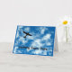 Un avión volando a través de cielos azules con nubes blancas esponjosas es el tema de mi "Nada elegante aquí - Solo una tarjeta de aniversario de avión".