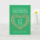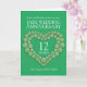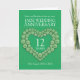 Tarjeta de aniversario de boda personalizada de jade verde número 12. Personalice esta tarjeta de aniversario con su fecha y años de matrimonio y palabras interiores. El ejemplo dice: Hermana y cuñado en su aniversario de boda de jade 12 años 25 de agosto de 2012 a 2024. Arte gráfico y diseño de cuentas de jade con efecto de corazón por Sarah Trett para www.mylittleeden.com